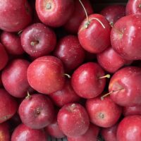 レッスンのテーブルに並ぶ、真っ赤で可愛い姫リンゴ。