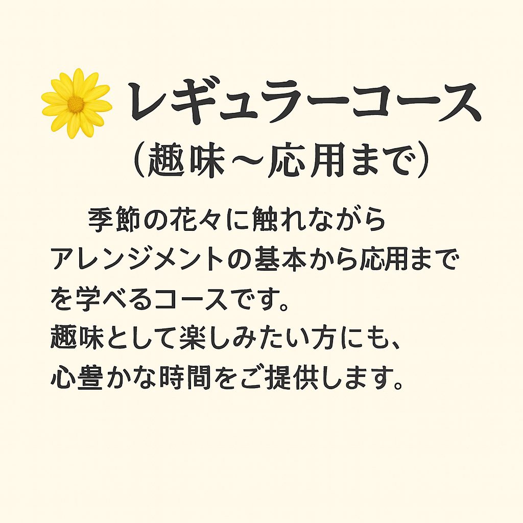 🌼季節の花々に触れながら、アレンジメントの基本から応用までを学べるコース