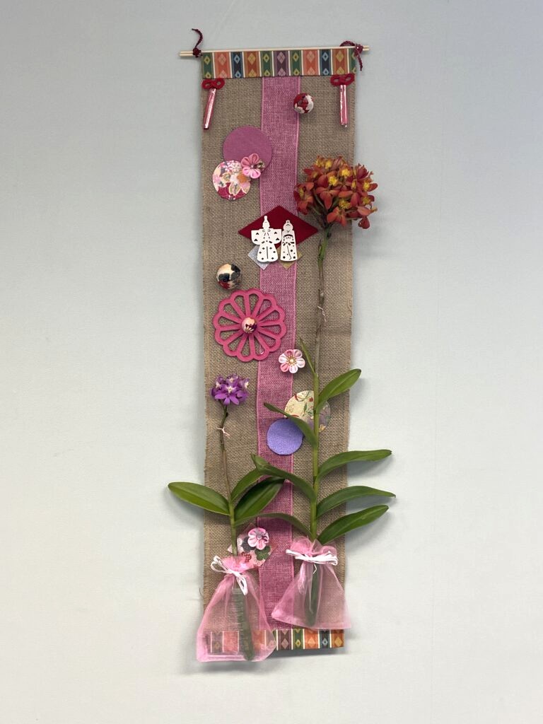 | 🌸 内容 | 新品種の蘭を使いお雛様のタペストリーを作ります ※ 蘭は丈夫で挿し木にできます |