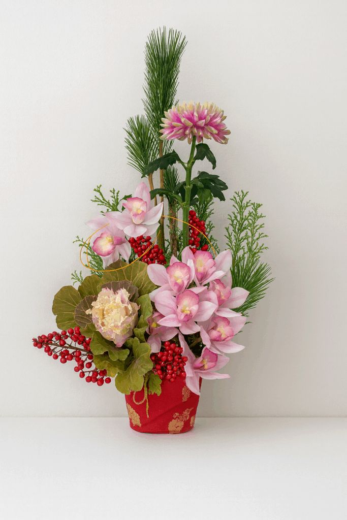 | 🌸 内容 | お正月の縁起の良い花材 (若松/葉ボタン/シンピジューム) |